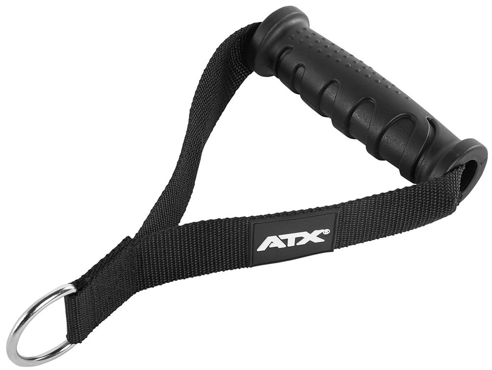 Dank der Universal-Einhängeöse ist der schwarze Griff kompatibel mit allen handelsüblichen Kabelzugstationen.