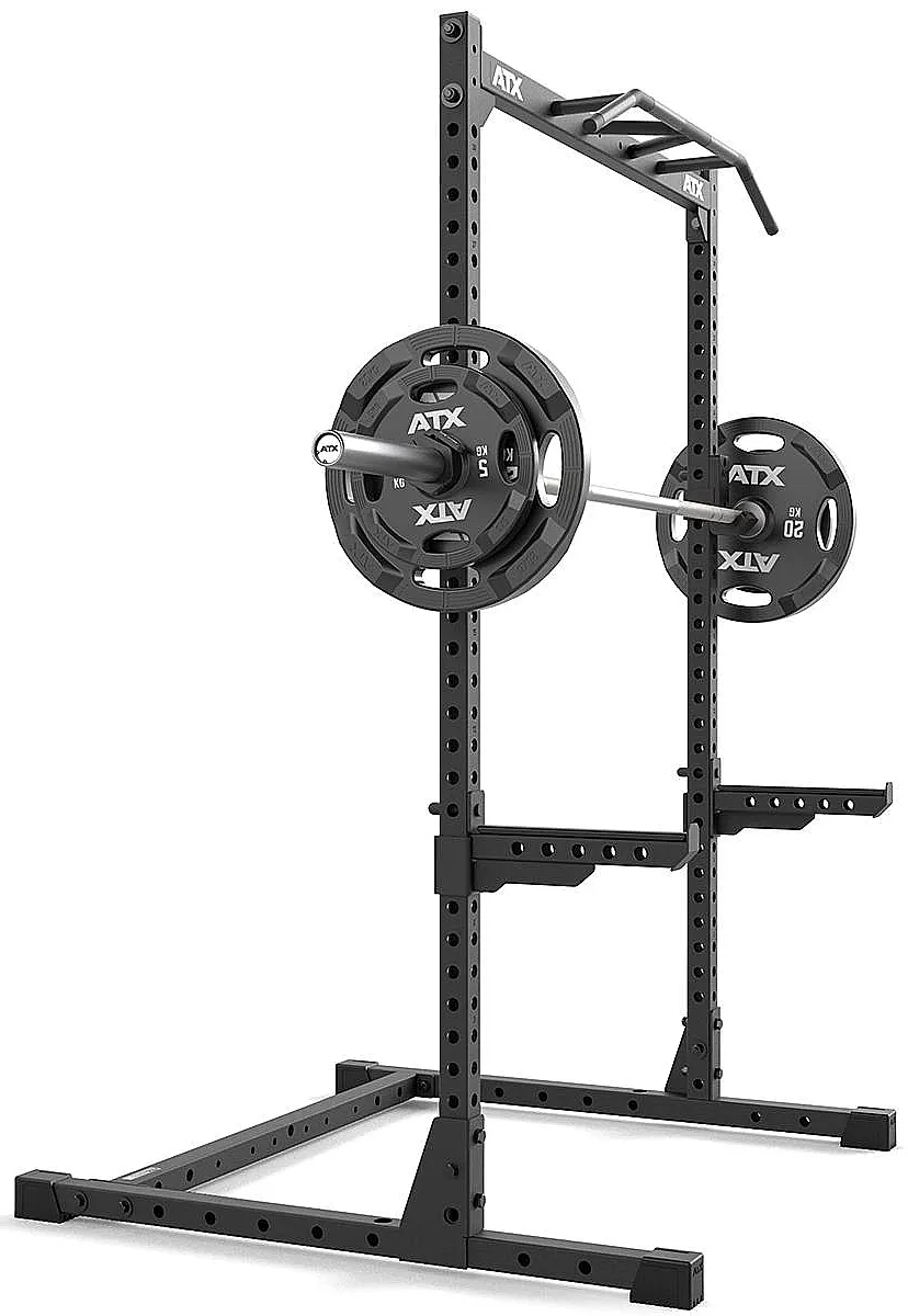 Das ATX® Half Rack HRX-510 ist die ideale Wahl für ambitionierte Athletinnen und Athleten, die auf begrenztem Raum ein professionelles Krafttraining absolvieren möchten. Mit einer kompakten Bauhöhe von nur 195 cm eignet sich das Rack perfekt für niedrige Trainingsräume. Die stabile Konstruktion aus 50 x 50 x 2 mm starken Stahlrohr mit verstärkten Knotenblechen ist absolut verwindungsfrei und bis 400 kg schwer belastbar!