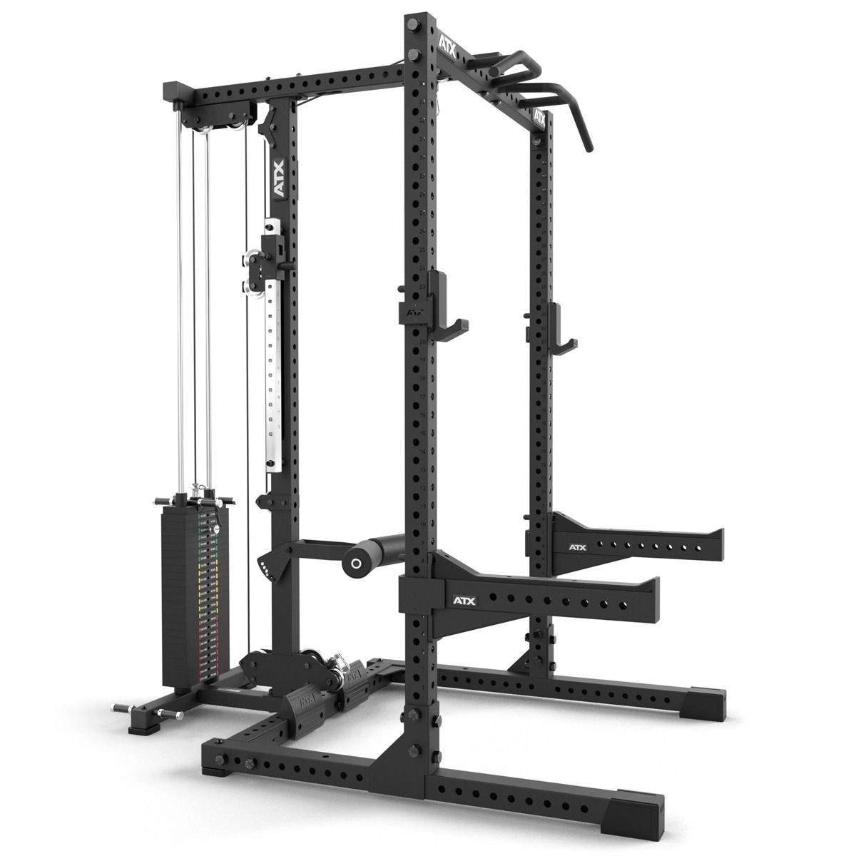 | ATX® HALF RACK + LATZUG OPTION - STECKGEWICHTE + STORAGE EXTENSION | ATX® HALF RACK + MODULARE BAUWEISE |