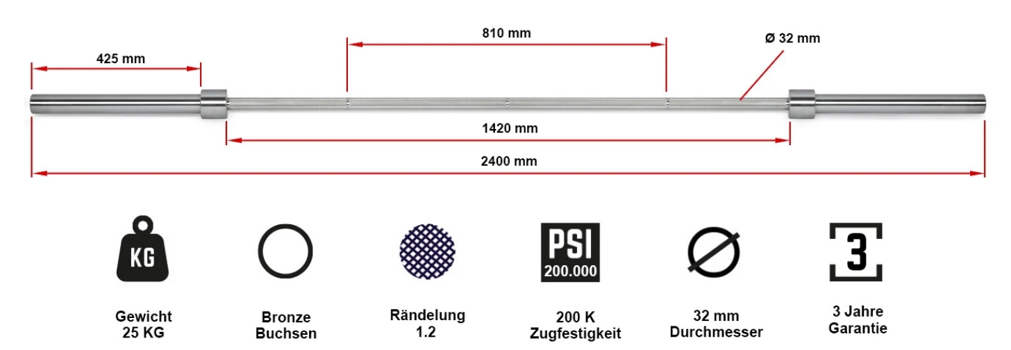 Die Hantelstangen haben eine extrem Hohe Zug- und Druckfestigkeit bei gleichzeitiger Elastizität. Somit können die Hantelstangen bis zu einer bestimmten Spannung (Elastizitätsgrenze) verformt werden, um danach ohne bleibende Verformung elastisch in den Ausgangszustand zurückzukehren. Ausschlaggebend hierfür ist die optimale hochwertige Legierung aus u.a. Chrom, Molybdän, Silizium, Mangan. Ob für Gewichtheben - oder Powerlifting, ATX® Hantelstangen halten auch extremsten Anforderungen stand und werden somit höchsten Ansprüchen gerecht.