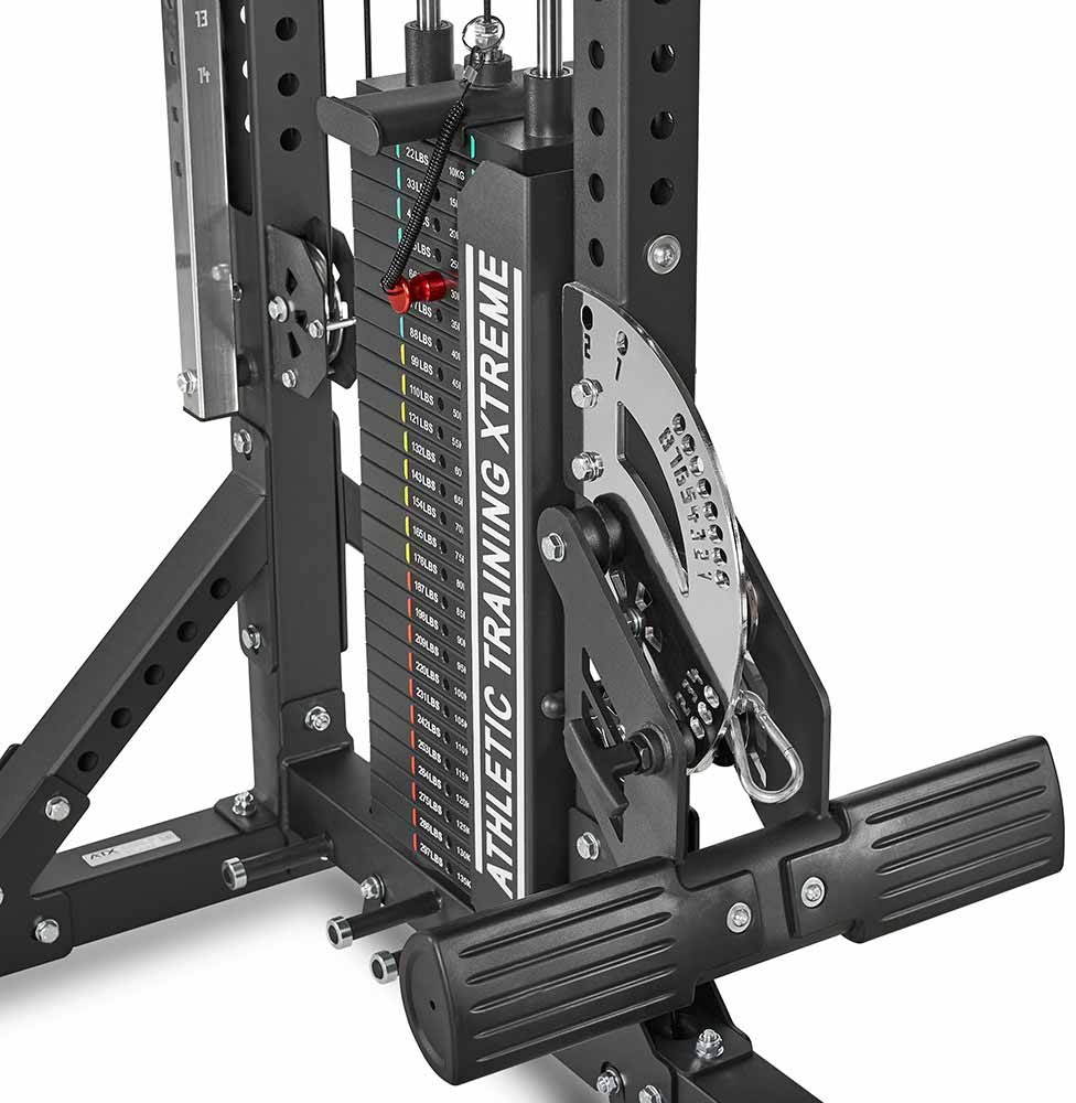 - Mit 135 kg Steckgewichten und Roller-Band-Pegs für noch schwerere, dynamische Widerstandsbelastung