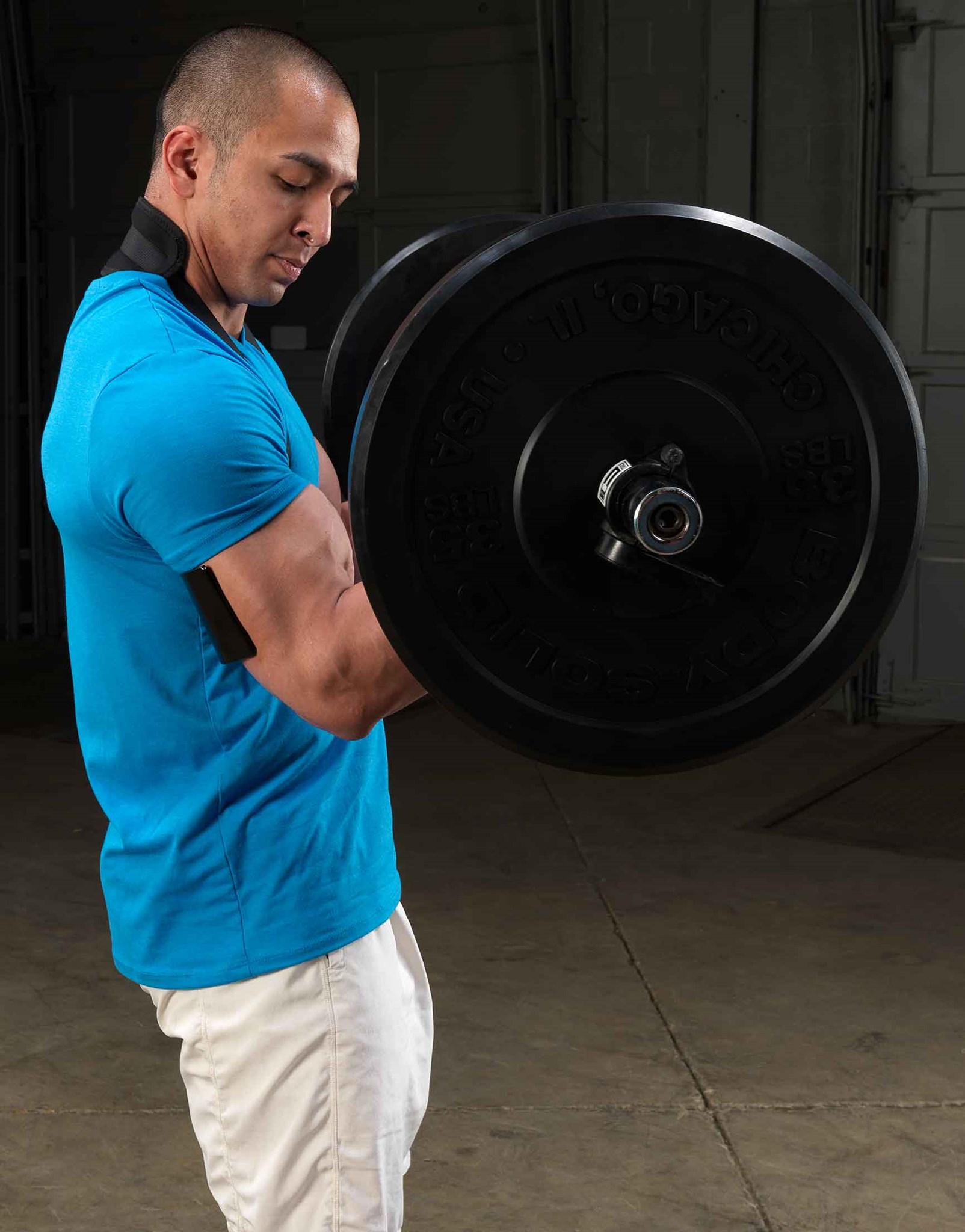 🔹 Bizeps-Training: Stell dich aufrecht hin, befestige den Biceps-Blaster um deinen Nacken, positioniere deine Arme bequem auf den Polstern und führe kontrollierte Curls mit Kurz- oder Langhantel durch.