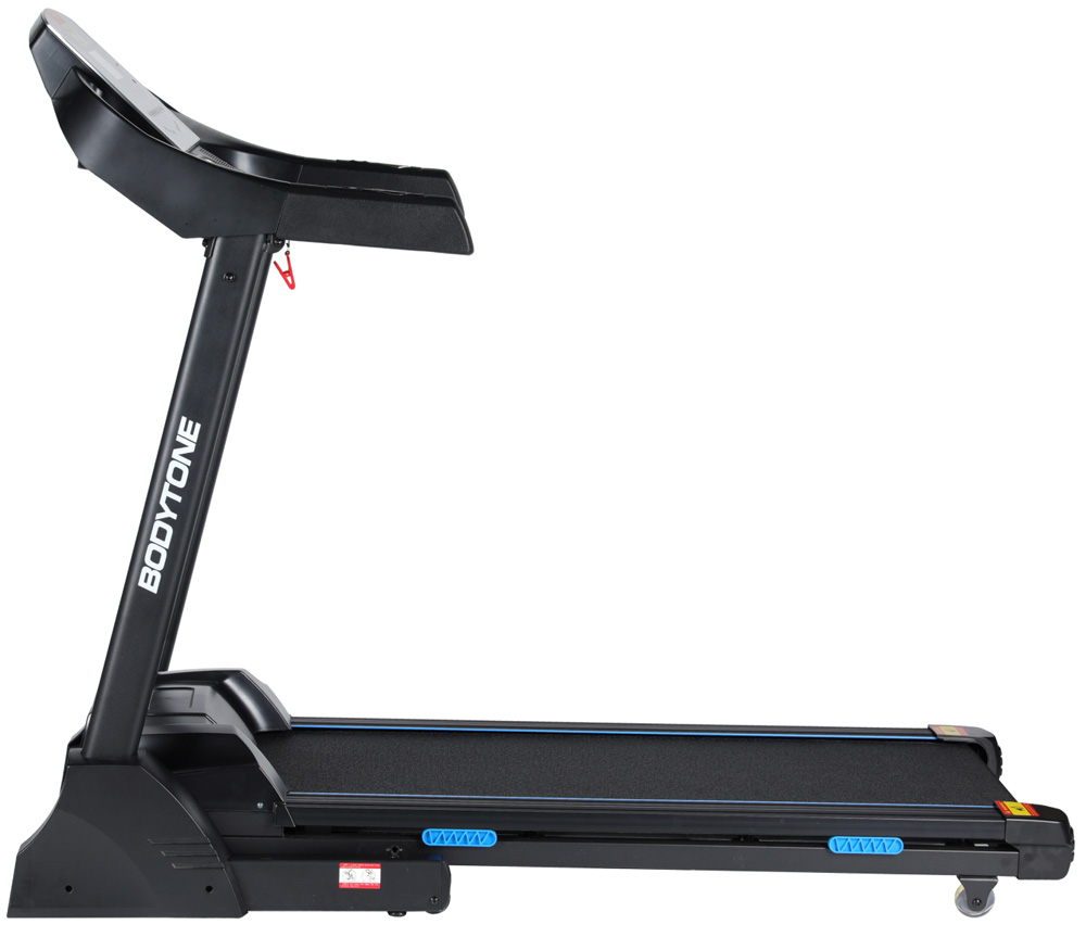 BODYTONE AUTOLUBRICATE BELT®. Antistatischer Stoff, der störende, kleine, elektrische Entladungen im Körper verhindert und selbstschmierend, der irreparable Schäden am Motor verhindert. - Konnektivität und Medien: Es ermöglicht Ihnen, sich über Bluetooth mit Android- und IOS-Geräten zu verbinden und Daten aus der Trainingseinheit in Echtzeit an Anwendungen wie Zwift, Mybodytone, Kinomap zu senden oder zu empfangen. MP3-Verbindung und integrierte High-Definition-Lautsprecher