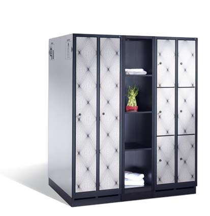 Wandhängende Schränke, Stahl- und Dekorfronten kombiniert, unterschiedliche Fachgrößen, offene Garderobenlösungen, 90°-Ecken mit passender Verblendung, verschiedene Verschlussund Beschriftungsoptionen und vieles mehr – allein diese Bilder zeigen, was mit Evolo alles möglich ist!Fächerschränke und offene Garderoben: Ideal als Ergänzung und für Bereiche, in denen sich nicht umgekleidet werden muss (z.B. im Büro).