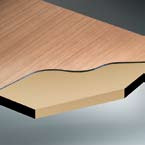 Die umlaufende anthrazitfarbene Kante zeigt das hochverdichtete Vollkernmaterial der HPL-Platte.