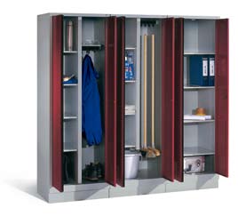 mit 300 mm Abteilbreite, und auf Sockel stehend, mit Stahltüren