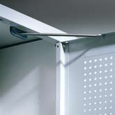 Türöffnungsbegrenzer 90°: Aus stabilem Edelstahl. Durch obere Anbringung keine Beeinträchtigung der Schranknutzung.