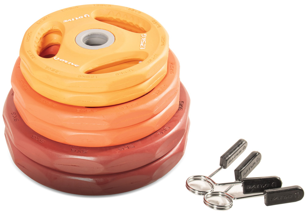 Das Power Disk Set besteht aus einer angenehm zu greifenden, mit Schaumstoff überzogenen Stange und gummierten Hantelscheiben. Die Hantelscheiben sind nicht komplett rund, um ein Wegrollen zu vermeiden. Sie haben bewusst platzierte Löcher, wodurch sie einfach zu greifen sind und bestimmte Workouts ermöglicht werden.