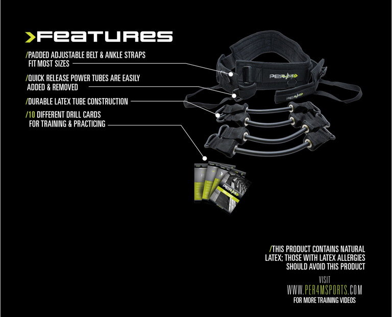 Der PER4M® Jump Trainer trainiert sowohl die vertikale als auch die horizontale Sprungkraft. Verbessern Sie Ihre dynamische Kraft im Unterkörper, indem Sie Ihre Übungen und Ihr Training mit zusätzlichem Widerstand ausüben.