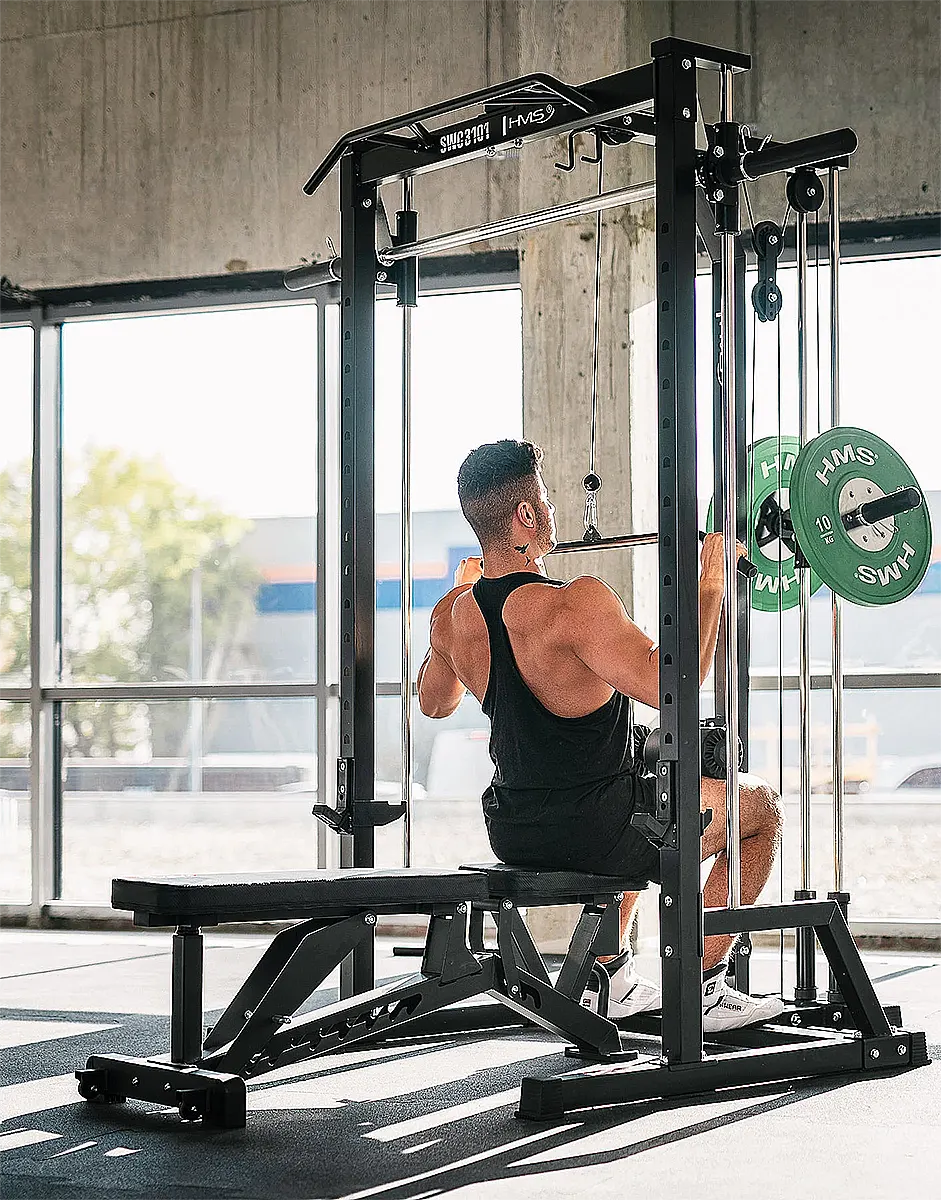 SWC3101 – Smith-Maschine inkl. Plate-Loaded Latzugstation (Semi Commercial HMS)