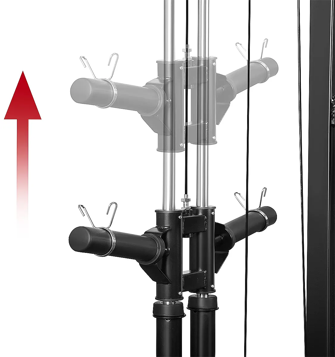 Der obere und untere Kabelzug funktionieren vollständig mit Hantelscheiben.